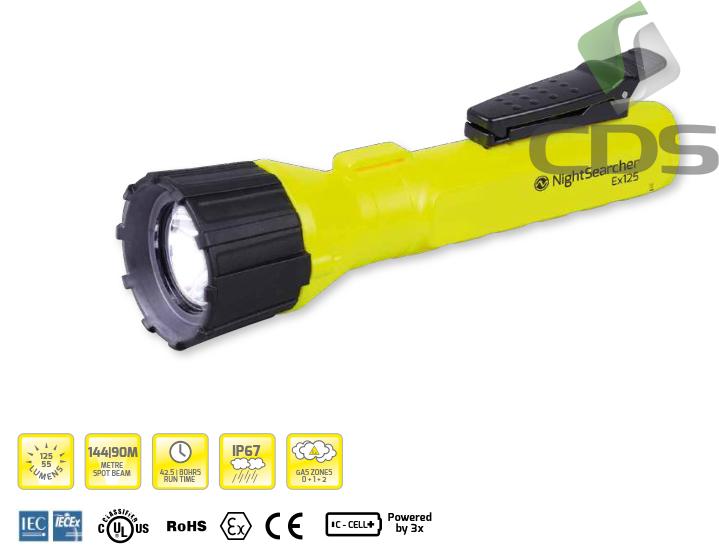 Iskrobezpieczna latarka LED EX125, oferuje 125 lumenów światła.