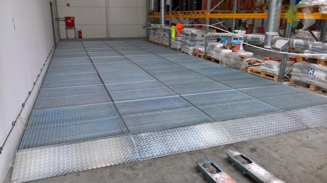 Specjalna budowa oraz małe oczka kratownicy zapewniają łatwe poruszanie sie wózkami magazynowymi z ładunkiem 7000 kg. po powierzchni modułu.