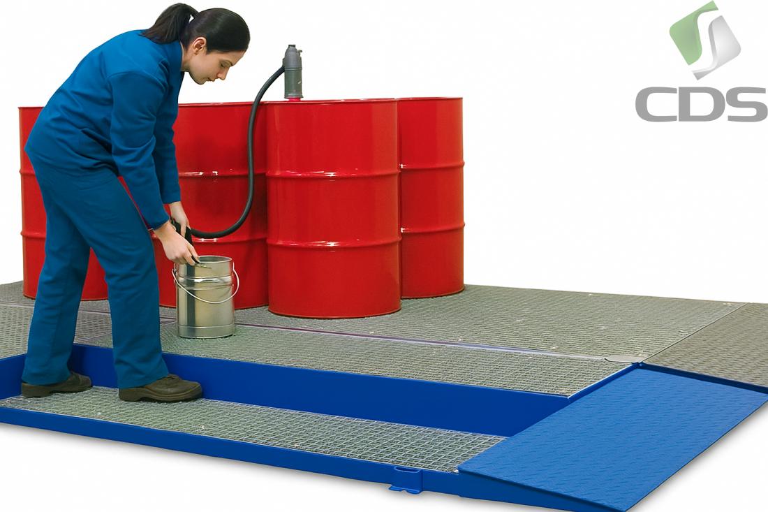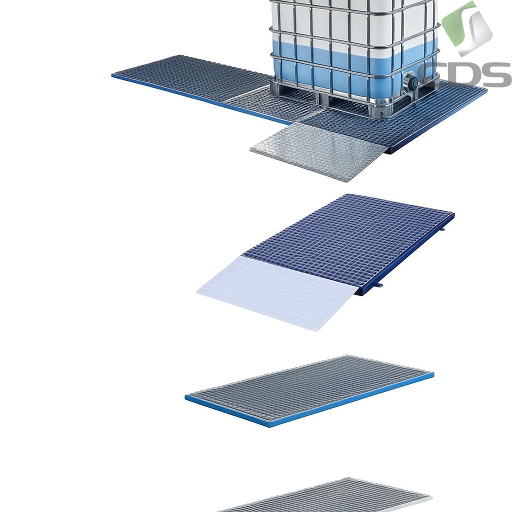 Powierzchnia odstawcza wanien, czyli miejsce, na którym umieszcza się kontenery lub pojemniki, wykonana jest z ocynkowanej kratownicy. Ocynkowanie zapewnia ochronę przed korozją i uszkodzeniami spowodowanymi przez substancje chemiczne. Kratownica ma specjalne otwory, które umożliwiają odpływ płynów do wanny, zapobiegając rozprzestrzenianiu się wycieków.