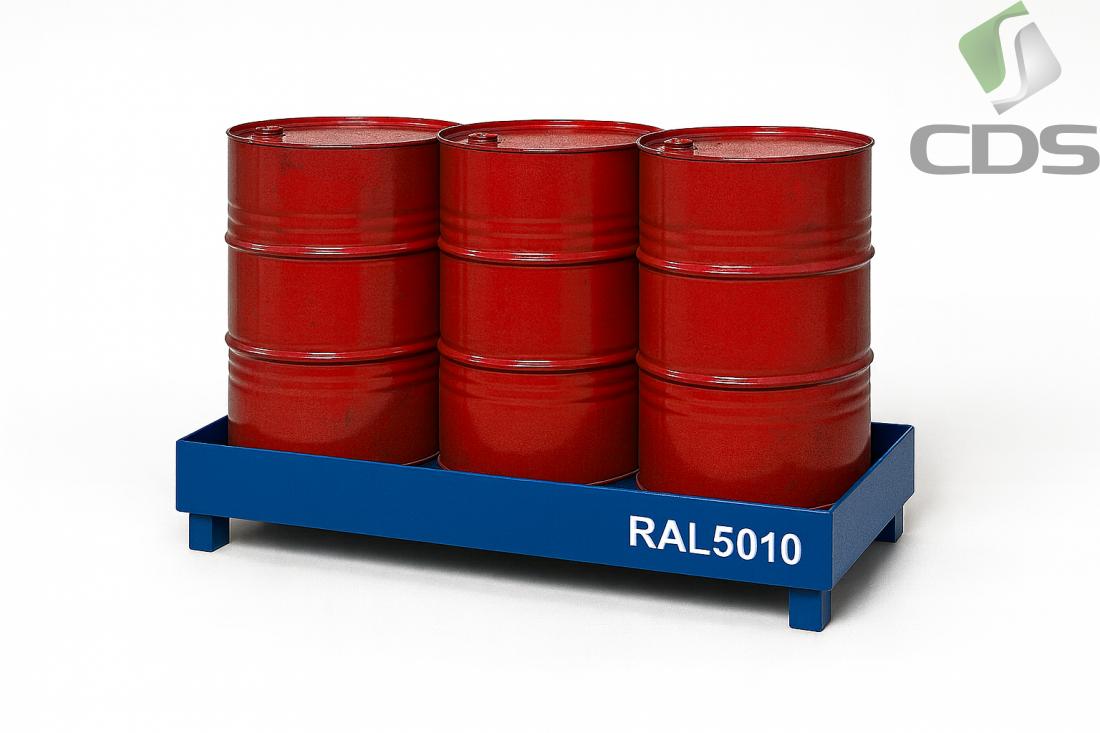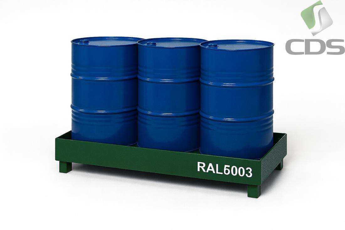 Wanna wychwytowa typu WWB/3B/LP została zaprojektowana do bezpiecznego przechowywania trzech beczek 200-litrowych (stalowych lub polipropylenowych) zawierających ciecze niebezpieczne dla środowiska (klasy WGK 1–3) oraz substancje łatwopalne.