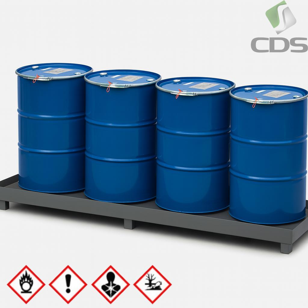 Wanna wychwytowa typu WWB/4B/LP została zaprojektowana do bezpiecznego przechowywania czterech beczek 200-litrowych (stalowych lub polipropylenowych) zawierających ciecze niebezpieczne dla środowiska (klasy WGK 1–3) oraz substancje łatwopalne.