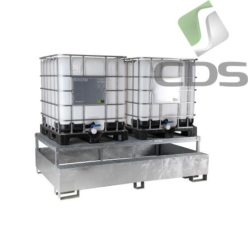 Wanna wychwytowa, stalowa, przeznaczona do przechowywania i eksploatacj dwóch pojemników IBC/KTC z dodatkową podstawką na kanistry lub mniejsze pojemniki.