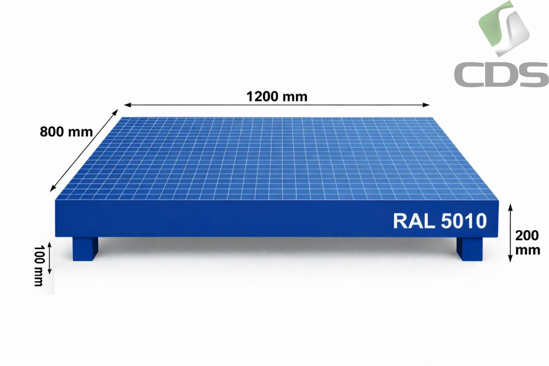 Konstrukcja malowana proszkowo na kolor niebieski (RAL 5010) lub inny kolor z palety RAL. Wanna jest odporna na korozję i przystosowana do bezpiecznego magazynowania substancji palnych, łatwopalnych oraz szkodliwych dla środowiska.