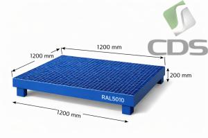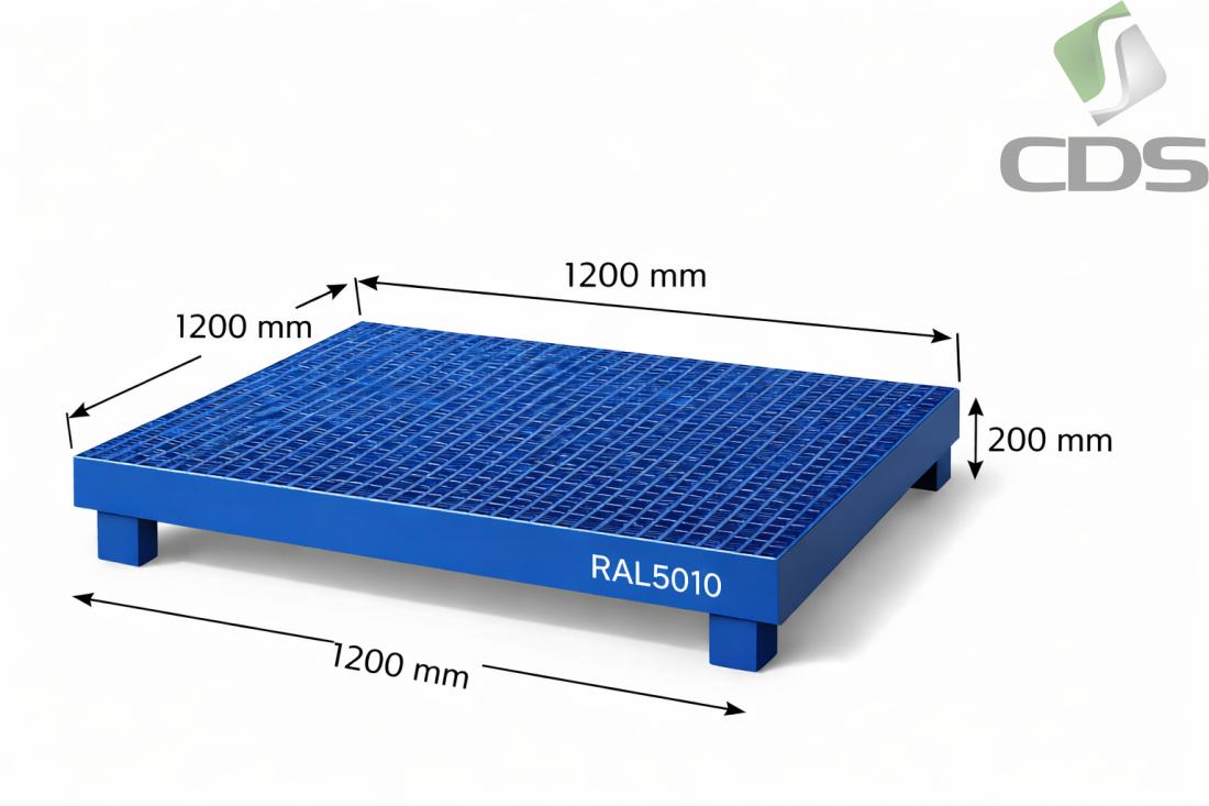 Konstrukcja malowana proszkowo w kolorze niebieskim (RAL 5010) lub innym z palety RAL, odporna na korozję i w pełni szczelna. Wanna przystosowana jest do magazynowania substancji łatwopalnych, toksycznych oraz szkodliwych dla środowiska, zgodnie z obowiązującymi przepisami BHP i ochrony środowiska.