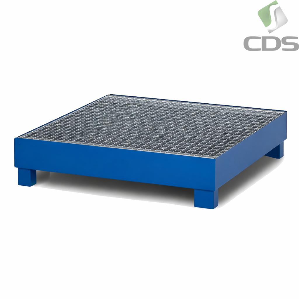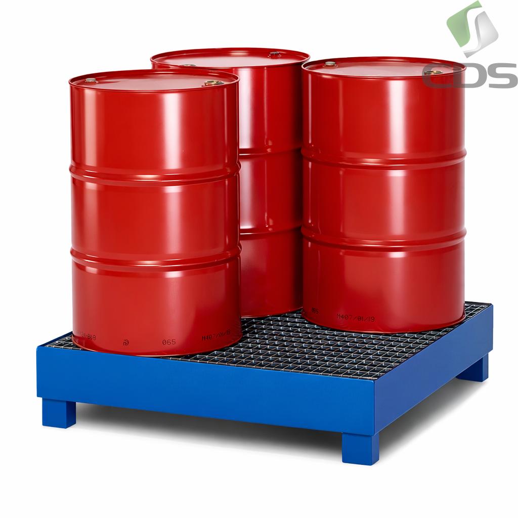 Stalowa wanna wychwytowa przeznaczona do bezpiecznego magazynowania czterech beczek 200 L lub mniejszych pojemników z cieczami niebezpiecznymi. Wyposażona w ocynkowaną kratownicę, która zapewnia stabilne ustawienie beczek oraz swobodny spływ wycieków do wanny.