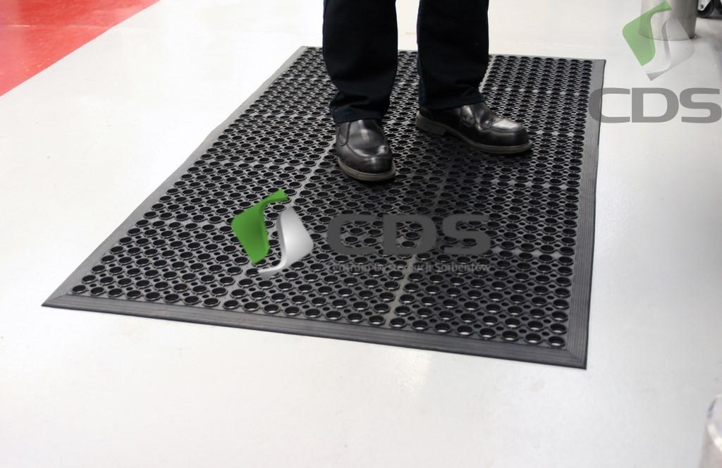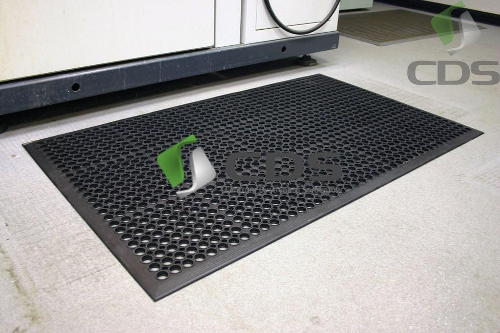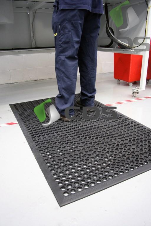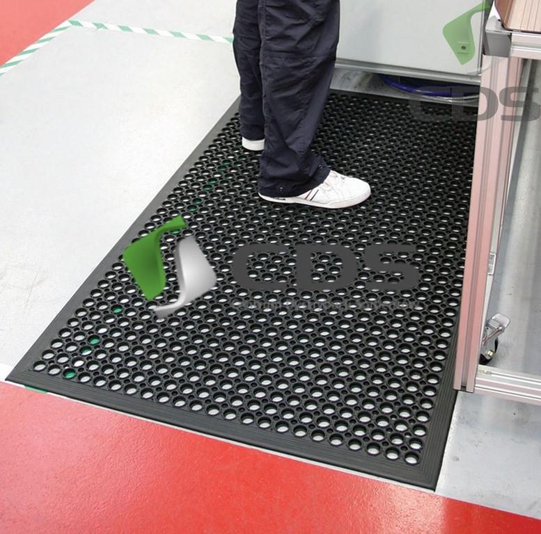 Poręczna mata stanowiskowa wykonana z trwałej i wytrzymałej gumy SBR do ogólnych zastosowań przemysłowych.