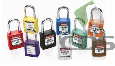 Układ blokowania klucza (nie można wysunąć klucza, jeśli szekla kłódki nie została prawidłowo zamknięta)Kłódki są dostarczane z etykietami DANGER („Niebezpieczeństwo”) oraz PROPERTY OF („Własność”).