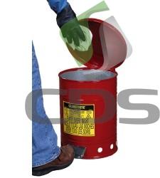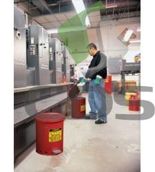 - Specjalnie zaprojektowany kosz do zbiórki zaolejonych szmat,ścierek,rękawic,itp.Samozamykająca pokrywa jest wyposażona w pedał.Pojemnik posiada uchwyt dla łatwiejszej manipulacji.- Kosz wykonany jest z ocynkowanej stali.Podwyższone dno umożliwia cyrkulacj ę powietrza pod nim, co redukuje temperatur ę wewnątrz pojemnika. Samozamykająca pokrywa uniemożliwia dost ę p powietrza czym ogranicza ryzyko rozszerzania si ę ewentualnego płomienia.Dostarczane w czterech wielkościach.- Pojemniki są testowane wg norm FM,UL.- Podwyższona gwarancja do 10 lat.