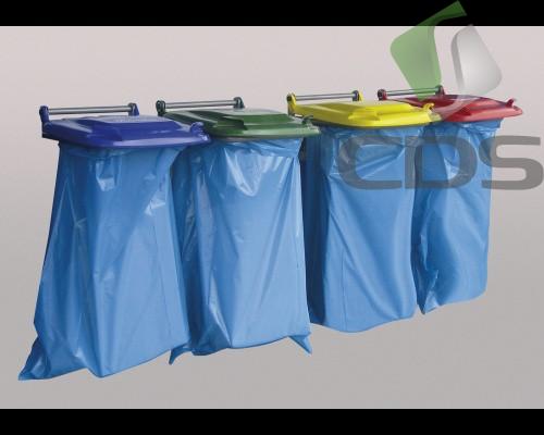 Prosta konstrukcja rurowa, plastikowa pokrywa.- Wyposażony w ramkę do worka.- Przystosowany do worków 120 l (Typ: 1077, 1078)- Powierzchnia pokryta farbą proszkową.- Stosowany we wnętrzach jak i na zewnątrz.