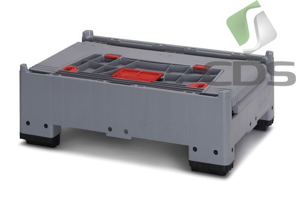 Wykonany z wysokiej jakości polietylenu. Z czterech stron wykonano zawieszane ścianki w celu łatwej obsługi. Możliwość złożenia pozwala na oszczędność miejsca podczas transportu. Istnieje możliwość piętrowania na siebie pełnych 5 szt.