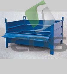 Praktyczna do składowania i transportu materiałów. Posiada wzmocnioną konstrukcję gwarantującą wysoką trwałość. Warstwowanie umożliwia maksymalne wykorzystanie powierzchni magazynowej. Dzięki narożnym słupkom z otworami może być podnoszona dźwigiem. Nietypowa konstrukcja umożliwia szerokie zastosowanie tych palet. Obsługa za pomocą wózka widłowego lub dźwigu. Standardowo wyrób jest wykonywany w kolorze niebieskim, na życzenie można wykonać w innych kolorach. Otwierana boczna powierzchnia umozliwia łatwiejsze wkładanie i wyjmowanie zawartości. Znajduje zastosowanie przy manipulacji z cieżkimi przedmiotami.
