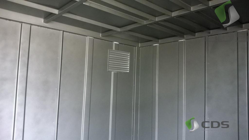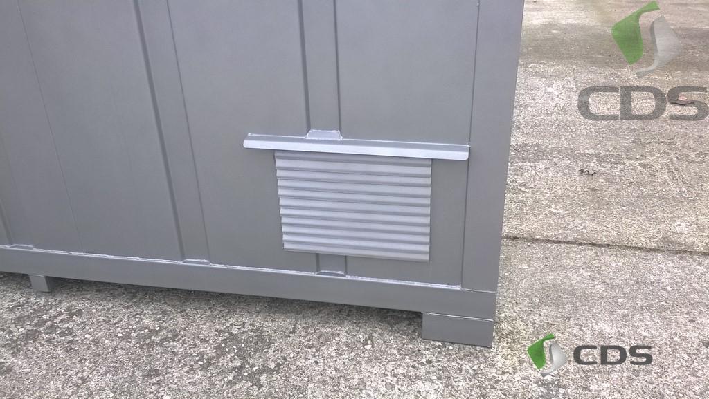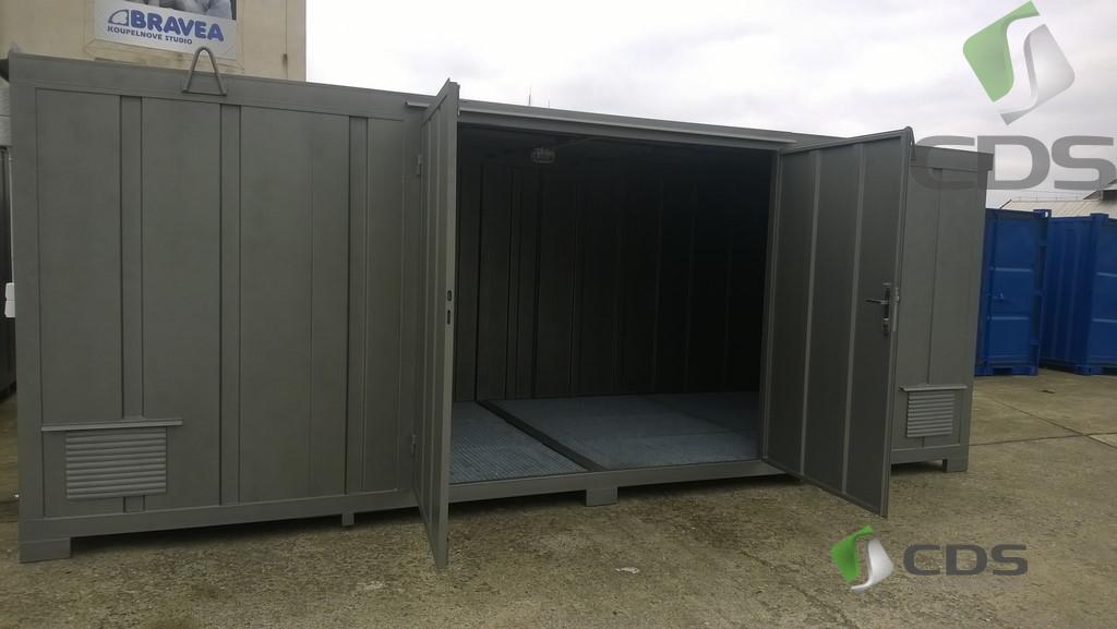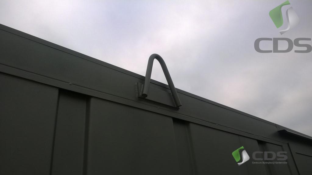 Podwójne drzwi wejsciowe zamykane na zamek patentowy, spód magazynu wykonany jako wanna ociekowa na całej powierzchni kontenera,