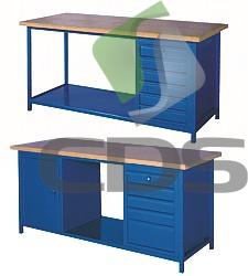 - Stabilna konstrukcja ze stalowej blachy i profilowanego materiału.- Sklejkowa deska robocza o grubości 30 mm. - Szuflady zamontowane na szynach z centralnym zamkiem. - Wykończenie powierzchni: - farba proszkowa (odcień dla RAL).- Wysokość wszystkich stołów 850 mm.