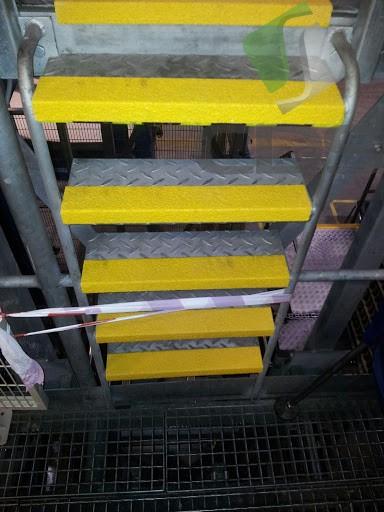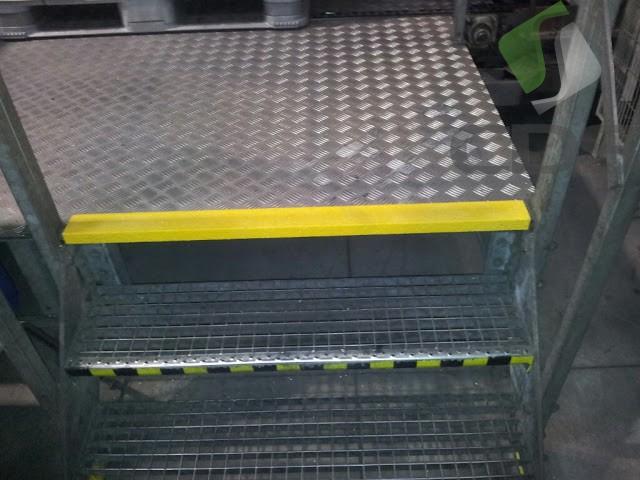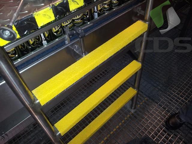 Nakładki antypoślizgowe są wykonane na 4mm profilu z włókna szklanego i żywicy poliestrowej. Grys zabezpieczający przed poślizgnięciem posiada stopień ziarnistości wynoszący 16 ziarenek na cm2. Nakładki mają wymiar 70x30 mm. Możemy dostarczyć je w odcinkach do 3200 mm. Standardowym kolorem jest żółty, który ma także funkcję ostrzegawczą (informuje o krawędzi stopnia).