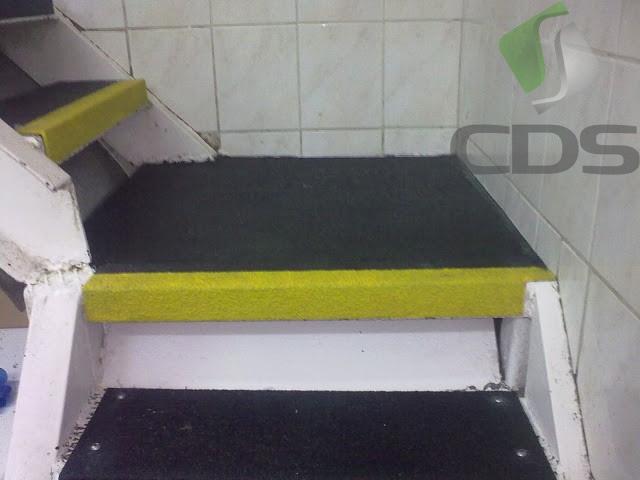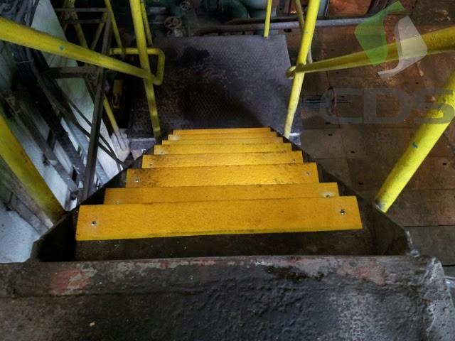 Wyprofilowane nakładki antypoślizgowe wykonane na 4mm profilu z włókna szklanego i żywicy poliestrowej Grys zabezpieczający przed poślizgnięciem posiada stopień ziarnistości wynoszący 16 ziarenek na cm2. Nakładki przycinamy na dowolne wymiary. Standardowe kolory to czarny lub żółty. Na specjalne zamówienie istnieje możliwość zaznaczenia krawędzi innym kolorem. Dzięki nakładkom w łatwy i tani sposób można zabezpieczyć zarówno śliskie schody w zakładach pracy jak i miejscach użyteczności publicznej.