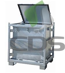 - Wygodne do składowania i transportu niebezpiecznych sta- łych materiałów.- Możliwość składowania w trzech warstwach.- Konstrukcja -stal,przystosowana do manipulacji dźwigiem i wózkiem widłowym,wieko zaopatrzono w gumową uszczelkę, zabezpieczane w położeniu otwartym.- Kieszeń na dokumenty przewozowe. - Stosuje się także w systemach ruchomych punktów zbiorczych.- Na żądanie zamawiającego można wykonać z powierzchnią wewnętrzną i zewnętrzną malowaną,cynkowaną ogniowo oraz wnętrze wyłożone gumą.