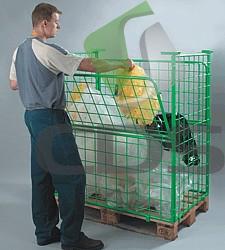 Rama osadzona na drewnianej EURO palecie, siatka 100x100mm, dwie ścianki otwierane, podwójnie warstwowane.