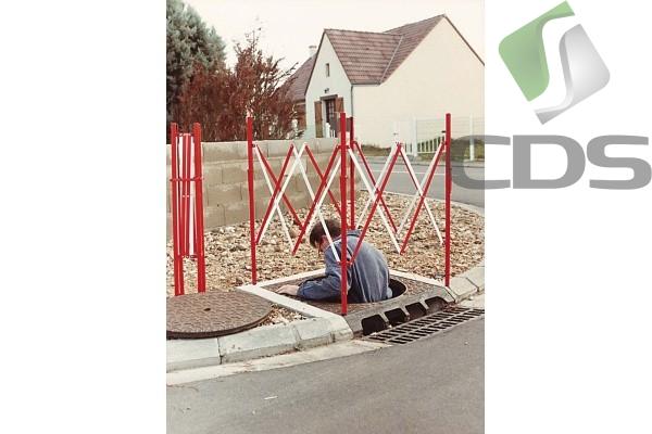 - Praktyczna ochrona studzienek kanalizacyjnych lub wykopów o maks. pow. 1 x 1 m.- Wykonane z malowanej stali.- Składana konstrukcja minimalizuje zapotrzebowanie na miejsce w trakcie transportu i magazynowania.- Wymiary: wysokość 1000 mm.- Waga: 11 kg.
