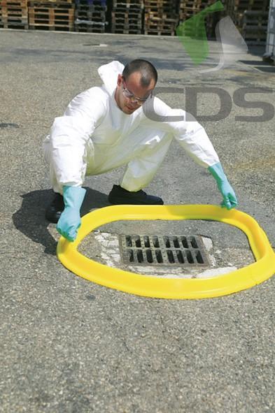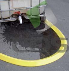 Ogranicznik rozlewów wykonany z elastycznego elastomeru poliuretanowego o wysokiej jakości i dużej wytrzymałości mechanicznej oraz odporności chemicznej na większość związków chemicznych. Produkt ten służy do ograniczania i zabezpieczania szczególnie zagrożonych i chronionych miejsc przed przedostaniem się niebezpiecznych wycieków i rozlewów. Zastosowanie: ochrona studzienek odpływowych i kanalizacyjnych oraz ujęć wody pitnej. Stosowany jest wszędzie tam gdzie magazynowane są substancje niebezpieczne, nawet te najbardziej agresywne chemicznie. Doskonale sprawdza się jako element zabezpieczający w zakładach pracy, służbach technicznych oraz wszelakich pracach remontowych i serwisowych. Niezwykle solidny produkt wielokrotnego użycia, zapewnia ochronę i możliwość użytkowania przez wiele lat. Zapewnia bezpieczeństwo użytkownika i ochronę środowiska naturalnego. Jest niezastąpiony w powstrzymywaniu wycieków i rozlewów. Charakteryzuje się wyjątkową konstrukcją szczelnie przylegającą do podłoża. Ogranicznik nie przepuszcza wody, oleju ani wielu innych płynnych środków chemicznych. Jest produktem wielokrotnego użycia. Aby zachować go w czystości wystarczy po użyciu przemyć ciepłą wodą z mydłem.