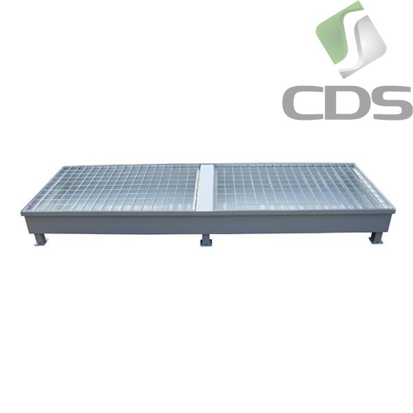 Wanna wychwytowa, stalowa, niska, pod beczki 4*200l lub mniejsze pojemniki, wym. (D*S*W) 2500×800×300mm, ocynk ogniowy