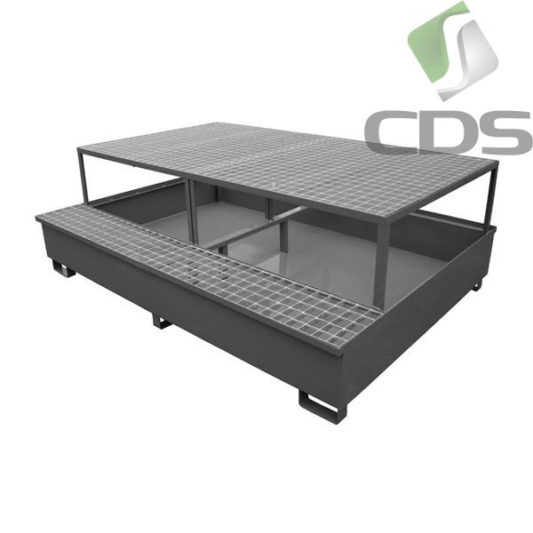 Wanna wychwytowa, stalowa, przeznaczona do przechowywania i eksploatacj dwóch pojemników IBC/KTC z dodatkową podstawką na kanistry lub mniejsze pojemniki.