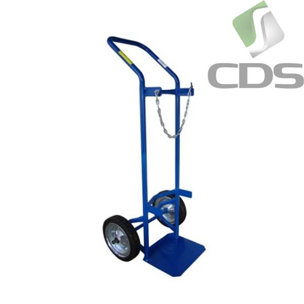 Wózek dwukołowy na butle z gazem technicznymNośność: 150kgKoła: pompowane fi 260mmFelga stalowaŁożyska kulkoweWysokość całkowita: 1000mm, szerokość całkowita: 600mm,długość całkowita: 600mmPlatforma: 220x310mm, grubość 3mmŚrednica rury: 25x2mmWaga: 13,5 kgZabezpieczenie antykorozyjne: lakier proszkowy, kolor RAL 5010Gwarancja: 24 m-cy